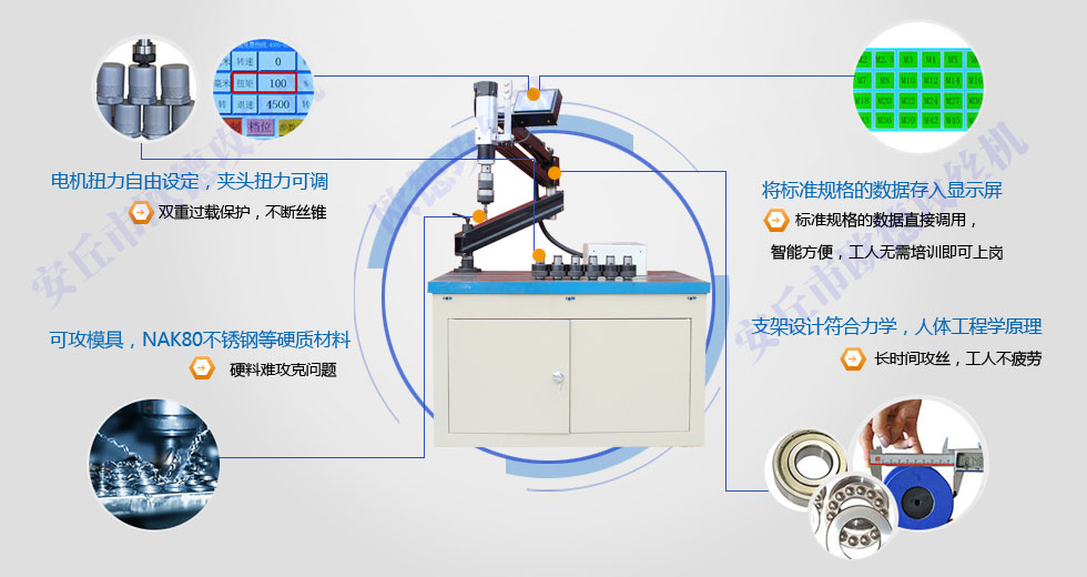 加工和電動攻絲機全產業鏈公司組織架構。以完善的人才和技術優勢為廣大客戶奉獻滿意的數控攻牙機提供安全有效的保障。公司主要產品有電動攻牙機等產品。