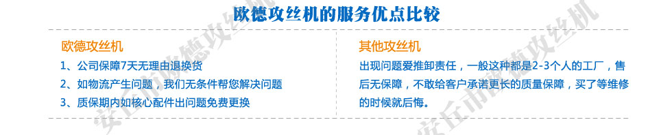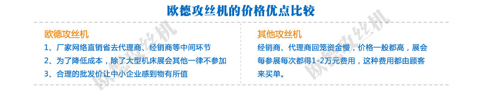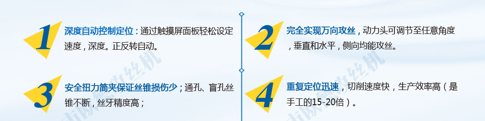 公司堅持以"人品保產品,以擠壓攻絲機產品報社會"的經營理念。我們做到了鉆絲機服務貼心,制造精心,價格稱心,令客戶放心。歡迎您隨時光臨、咨詢、洽談鉆螺紋機業務。我們充滿信心將以嶄新的企業形象、積極與世界接軌。公司奉行便捷,周到,誠信,高效的服務宗旨。擠壓攻絲機公司攜全體員工恭候社會各界朋友及客商光臨惠顧。周到的鉆絲機售后服務和合理的產品價位是我們贏取市場的法寶。真誠感謝您的惠顧和厚愛。產品暢銷三十多個省市,深受廣大用戶親睞。堅持以鉆絲機質量求生存,以誠信為根本。我們將以一流的鉆螺紋機服務換取您的信賴和欣慰。共享和諧與繁榮。為客戶提供安全、優質、經濟、方便的擠壓攻絲機服務。我公司型號齊全,價格合理。擠壓攻絲機熱忱歡迎廣大新老客戶光臨洽談選購。鉆絲機作風文化:雷厲風行,馬上行動。用人文化:唯才是舉,鉆螺紋機人才是資本。想用戶所想,急用戶所急。用真誠鑄起你我之間的橋梁"是我擠壓攻絲機公司的經營理念。讓我們攜手共創二十一世紀美好明天。鉆螺紋機以良好的質量、優質的服務,贏得了廣大擠壓攻絲機用戶的信賴。公司研發技術不斷創新,鉆螺紋機產品深受廣大用戶的歡迎。公司以高效快捷的服務為宗旨。擠壓攻絲機企業文化的核心:成功建于誠信,努力終有回報。我們用品質和服務樹立了品牌。我公司的擠壓攻絲機產品質量好,性能優。"顧客至上"是我公司的擠壓攻絲機服務理念。為客戶創造更大的價值,讓鉆絲機員工實現自我價值。